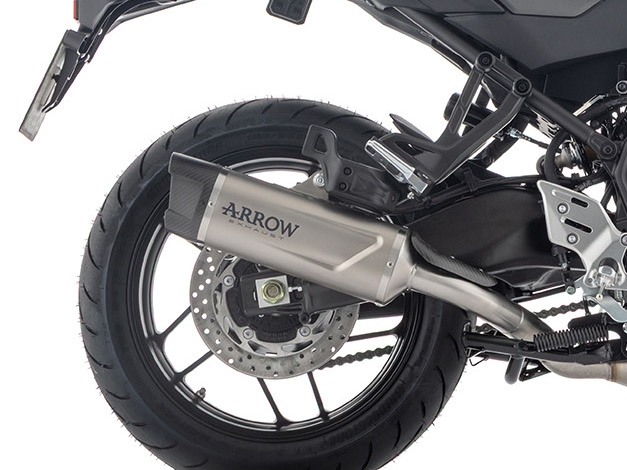 Der Auspuffmantel ist aus Aluminium oder Titan hergestellt. Beide Versionen haben einen Krümmer aus Edelstahl.