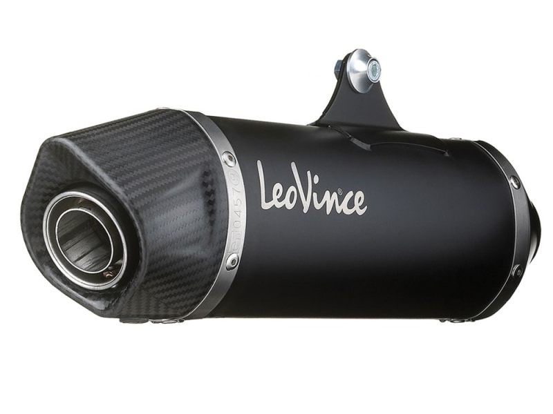 Mittels moderner Laser-Technologie wurde das LeoVince-Logo auf den Auspuff aufgebracht. Nicht allein als Markenzeichen wahrgenommen, zeigt sich das Logo als formschön heller Blickfang auf dem dunklen Farbton des Schalldämpfers und unterstützt dadurch die Besonderheit dieser Auspuffanlage.
