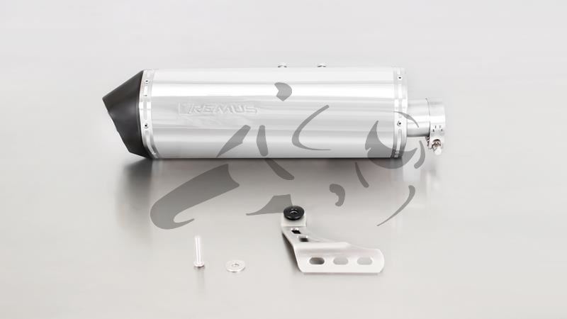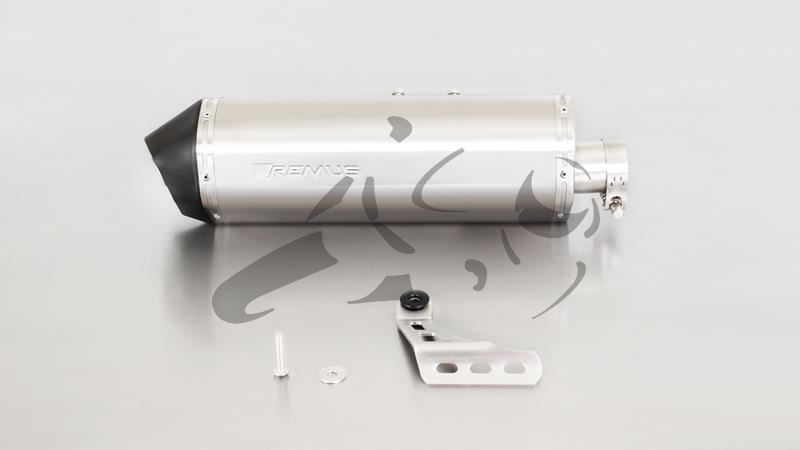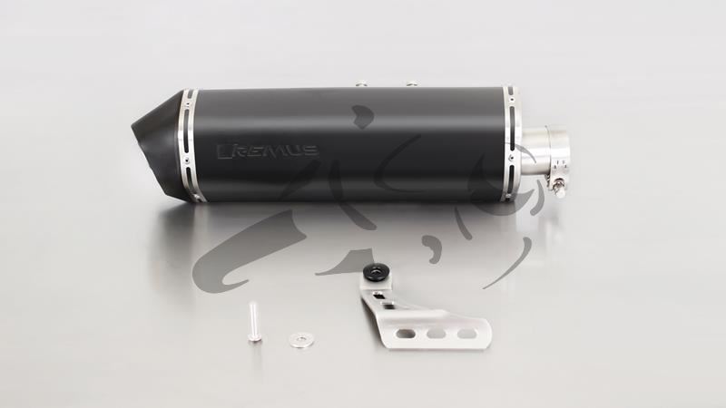 De levering omvat de achterdemper en alle benodigde montagematerialen. De behuizing van de achterdemper is gemaakt van roestvrij staal, zwart roestvrij staal of titanium.
