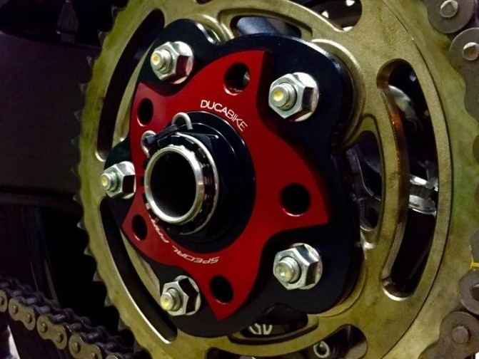 Optional kann eine Achsmutter wie auch ein Mutternset für den Kettenradflansch in verschiedenen Farben dazu bestellt werden. Sowohl die Achsmutter, als auch das Mutternset für den Kettenradflansch ersetzen die originalen Muttern 1:1 und werden entsprechend mit dem selben Drehmoment angezogen.