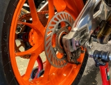 Die leichte Bremsscheibe bietet zwei entscheidende Vorteile gegenüber original Bremmsscheiben. Das Gewicht der sich umderhenden Masse des Hinterrades wird deutlich reduziert und dank weniger Auflagefläche erhöht sich die Kontrollierbarkeit auf der Rennstrecke.
