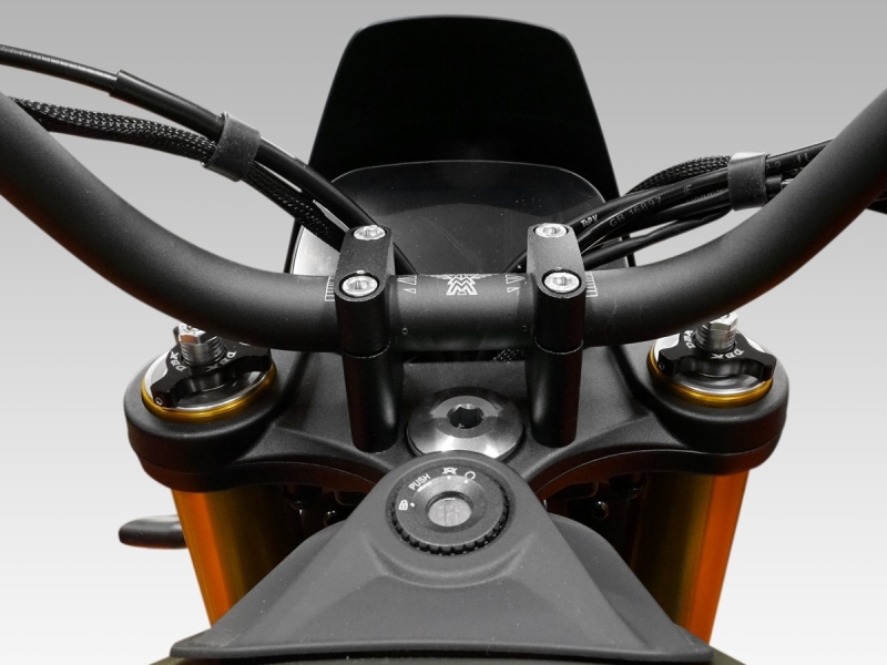 Das Gabel-Vorspannversteller-Set ermöglicht eine schnelle und präzise Einstellung der Federvorspannung an der Frontgabel. Es besteht aus hochwertigem, CNC-gefrästem Aluminium mit eloxierter Oberfläche und ersetzt die serienmäßigen Einstellschrauben durch eine robustere und langlebigere Lösung. Die Versteller werden direkt oben an der Gabel montiert und erlauben eine einfache Anpassung der Federvorspannung an Fahrergewicht und Fahrstil ohne größere Umbauten. In der sportlichen Farbausführung setzen sie zudem einen dezenten optischen Akzent am Vorderrad.