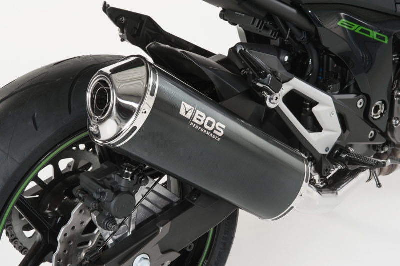 The silencer cover is available in polished stainless steel, black stainless steel or carbon fiber, with a shiny end cap in all variants.