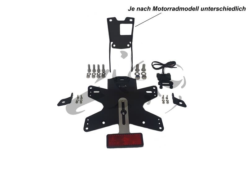 1x Kennzeichenhalter mit modellspezifischer Befestigung für das gewählte Motorradmodell