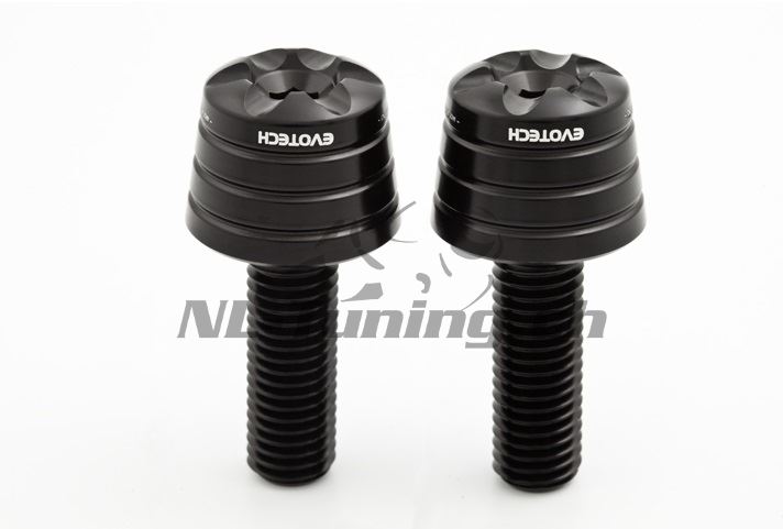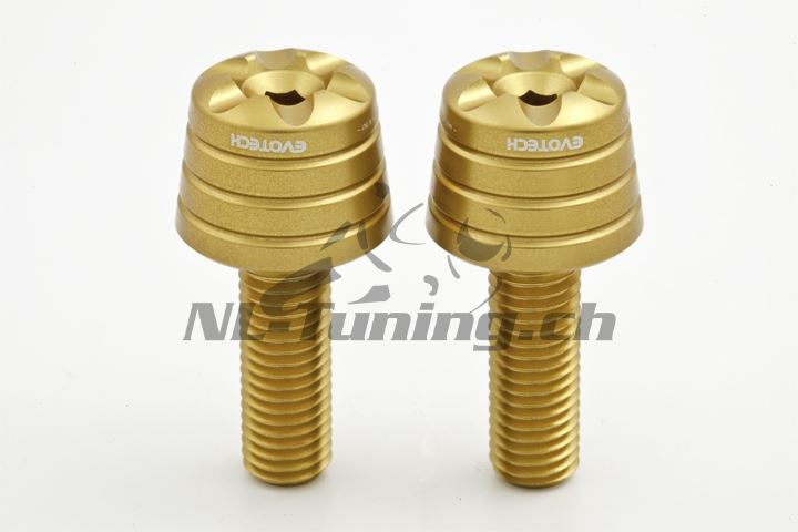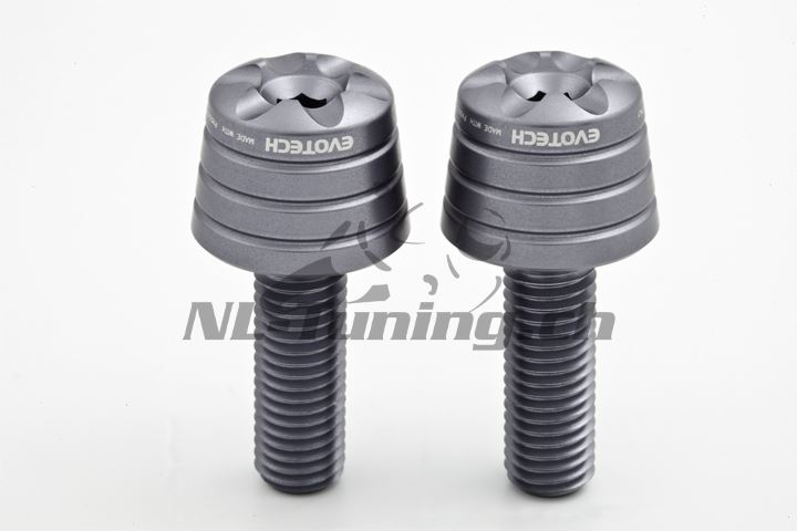 Die Evotech Lenkerendzapfen sind aus speziellem Aluminium gefräst. Sie haben ein innovatives Design bis ins letzte Detail. Der Aufnahmepunkt entspricht dem Originalteil. Aus diesem Grund lässt sich der Anbau sehr schnell und einfach umsetzen. Die Schrauben sind aus leichtem aber hochfestem Duraluminium gefertigt und im gleichen Farbton wie die Endzapfen eloxiert. Zur Auswahl stehen 6 verschiedene Farbtöne.