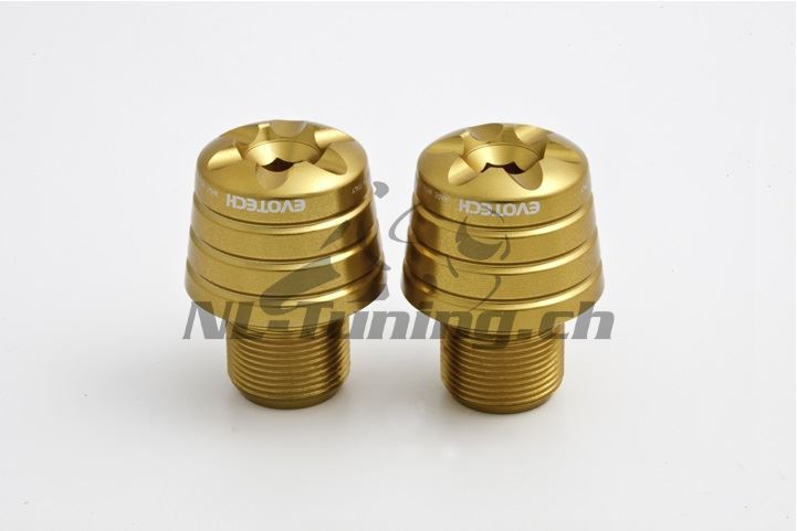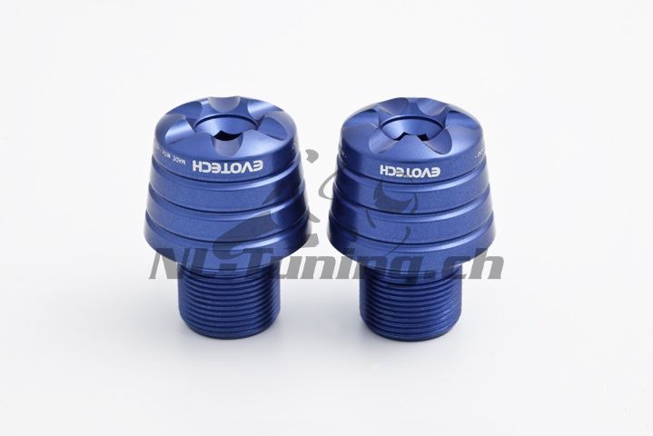 Die Evotech Lenkerendzapfen sind aus speziellem Aluminium gefräst. Sie haben ein innovatives Design bis ins letzte Detail. Der Aufnahmepunkt entspricht dem Originalteil. Aus diesem Grund lässt sich der Anbau sehr schnell und einfach umsetzen. Die Schrauben sind aus leichtem aber hochfestem Duraluminium gefertigt und im gleichen Farbton wie die Endzapfen eloxiert. Zur Auswahl stehen 6 verschiedene Farbtöne.