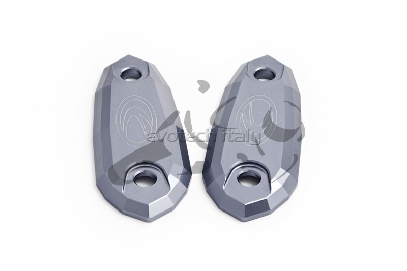 Bei Fahrten auf der Rennstrecke werden für gewöhnlich die Original-Spiegel entfernt. Dann stellt sich die Frage, wie die Verkleidung an den Haltepunkten der Spiegel befestigt und die Löcher sauber abgedeckt werden können. Die passgenauen und formschönen Teile wurden genau zu diesem Zweck entwickelt. Zur Auswahl stehen 6 verschiedenen Farben. Mit dem Evotech-Logo und der vollendeten Oberfläche sind diese Teile sowohl auf der Rennstrecke, wie auch bei anderen Veranstaltungen, wo die Rückspiegel entfernt werden, stets ein Blickfang.