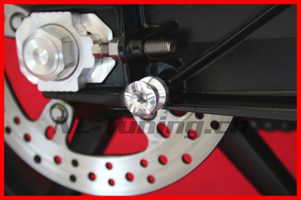 Die Ständerpads werden aus einer speziellen, in der Luftfahrt verwendeten Aluminiumlegierung gefräst. Durch die Bearbeitung an CNC-gesteuerten Maschinen sind sportliche und sehr elegante Formen realisierbar. Die Stilelemente orientieren sich an den Lenkerendzapfen, wodurch bei Kombination ein einheitlicher Look erreicht wird. Aufgrund ihres grossen Durchmessers und des besonderen Materials sind die Bolzen äusserst stabil. Sie Schützen zudem beim Motorradtransport. Die Montage erfolgt mit einem normalen Innensechskant-Schlüssel.