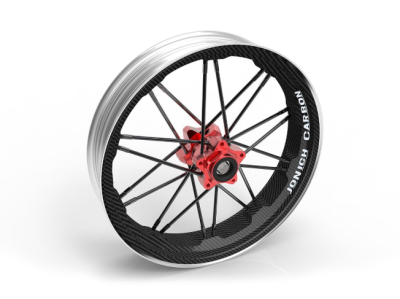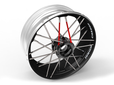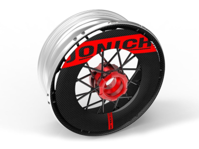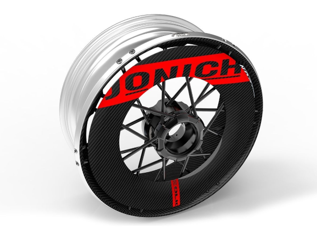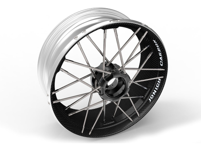 Die Carbonfelgen von Jonich bestehen aus geschmiedetem Aluminium mit Edelstahlspeichen und Carbonbeschichtung. Wahlweise können auch das Tiefbett und die Speichen aus Titan bestellt werden. Somit wird noch eine zusätzliche Gewichtserparnis von 42% erreicht.