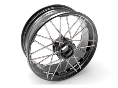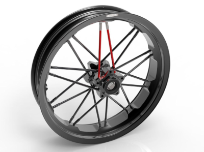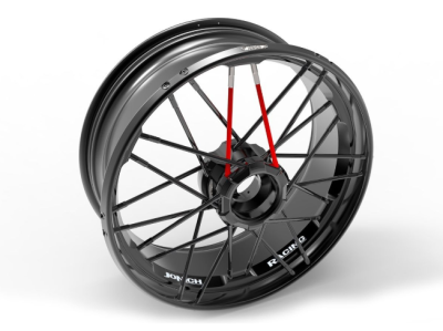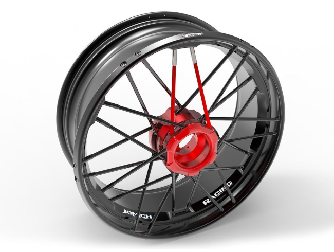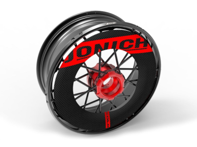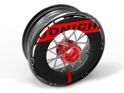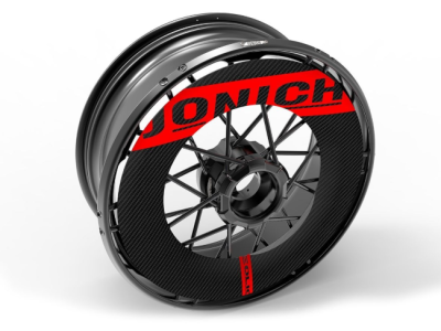 Die Felgen von Jonich bestehen aus geschmiedetem Aluminium mit Edelstahlspeichen. Wahlweise können auch das Tiefbett und die Speichen aus Titan bestellt werden. Somit wird noch eine zusätzliche Gewichtserparnis von 42% erreicht.