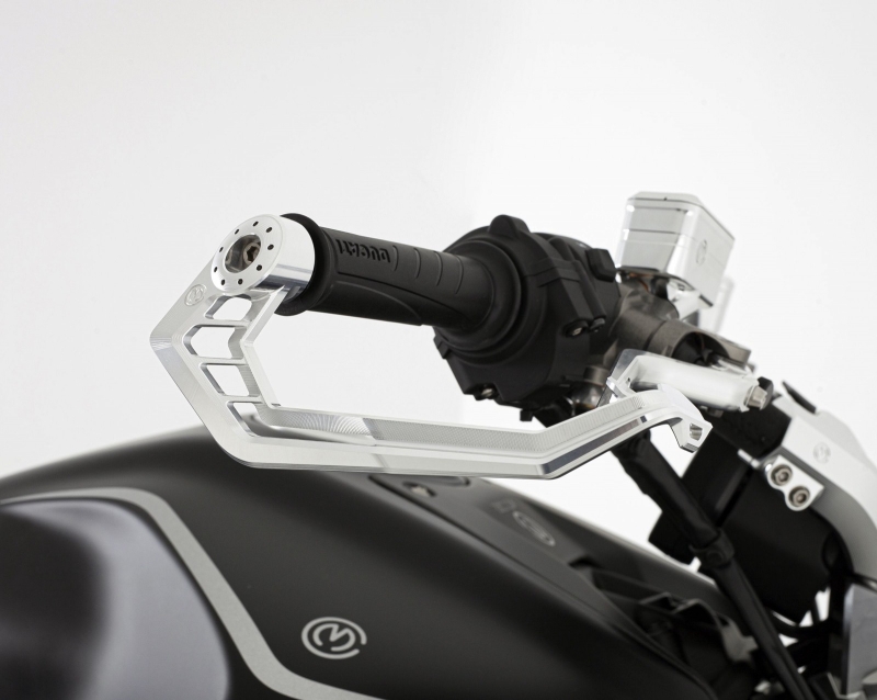 Der Bremshebelschutz kommt aus dem Rennsport und verhindert das unbeabsichtliche Betätigen der Bremse, wenn man zu nahe an einen Gegner kommt. Im Rennsport ist der Bremshebelschutz pflicht, auf der Strasse gibt es dem Bike einen individuellen Look. Mit diesem von Motocorse wird Sicherheit und Design in einem Bauteil vereint.