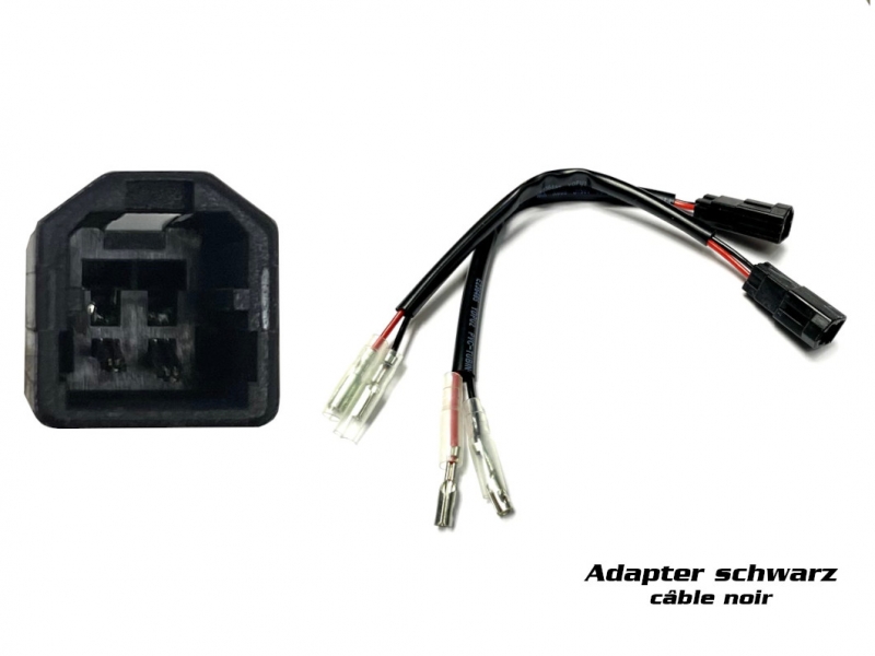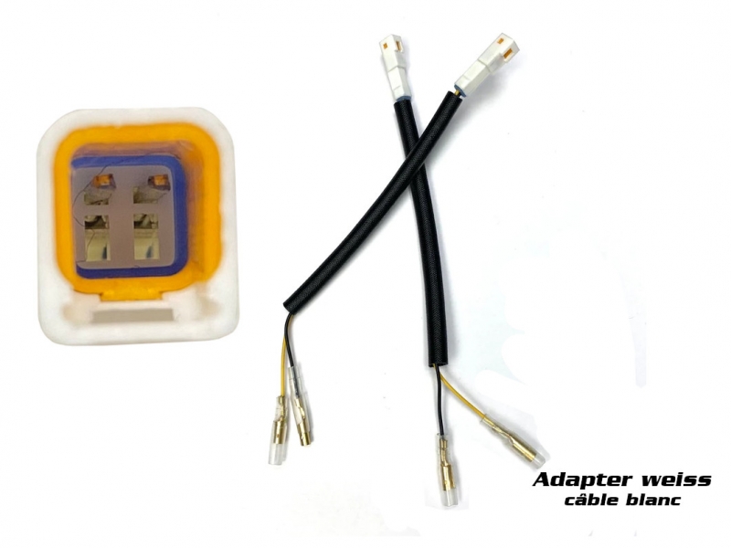 The adapter cables come directly with or without a resistor, this is required so that the indicators work properly and there is no error message on the display. According to our information, the black adapter cables are used for the rear indicators and the white ones for the front indicators.