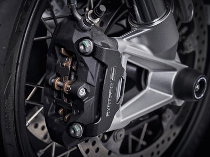 Queste protezioni proteggono le pinze dei freni anteriori. Si fissano semplicemente con i bulloni delle pinze freno originali e non richiedono alcuna modifica.