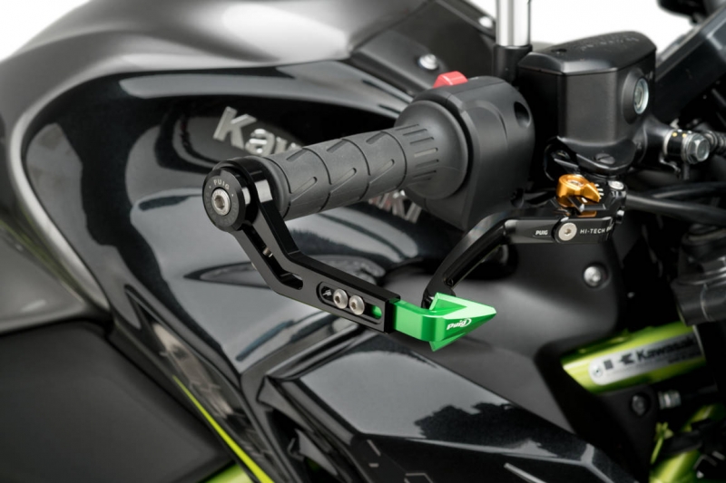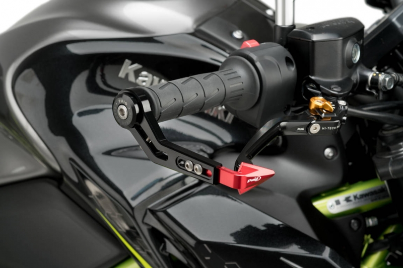 Der Bremshebelschutz kommt aus dem Rennsport und verhindert das unbeabsichtliche Betätigen der Bremse, wenn man zu nahe an einen Gegner kommt. Im Rennsport ist der Bremshebelschutz pflicht, auf der Strasse gibt es dem Bike einen individuellen Look.