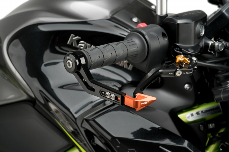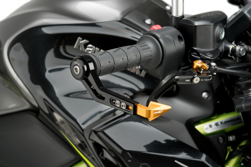 The brake lever protector comes from racing and prevents unintentional actuation of the brake if you get too close to an opponent. In racing, the brake lever protector is mandatory, on the road it gives the bike an individual look.