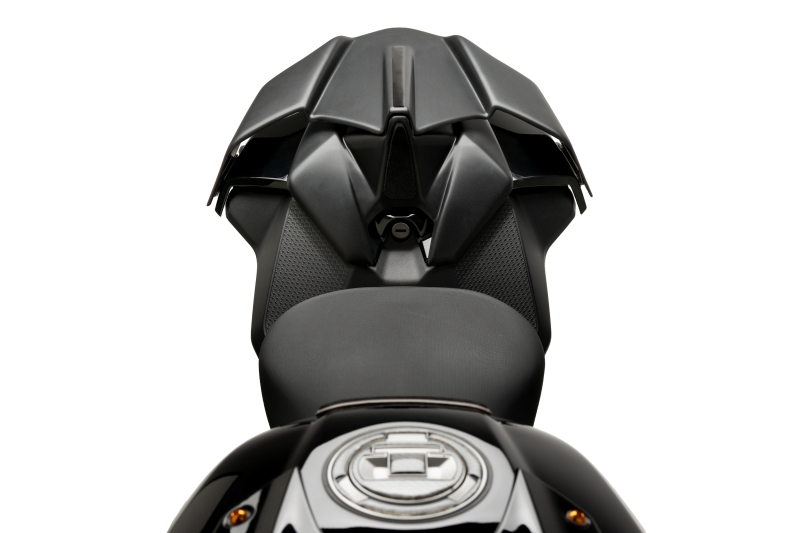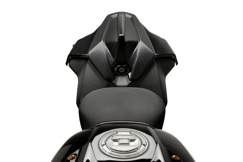 Il set di cupolini posteriori di Puig riduce le turbolenze generate dall'aria alle alte velocità e allo stesso tempo stabilizza la moto. La schiuma assicura un miglior comfort durante la guida. Questo trasforma la moto in una monoposto.