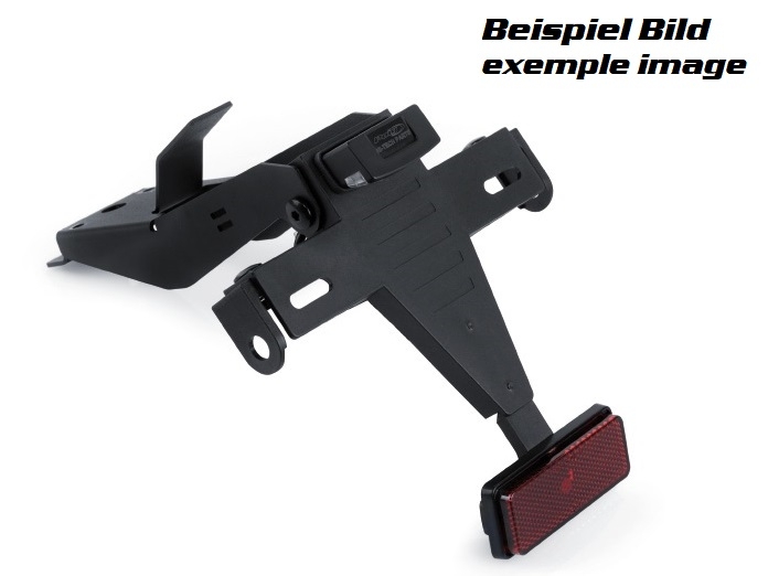 Der Kennzeichenhalter von Puig kommt mit allen benötigten Montageteilen und einer Einbauanleitung. Die mitgelieferten Blinkerbefestigung sind passend für die Zubehörblinker, es können auch Halter für die Originalblinker mitbestellt werden.