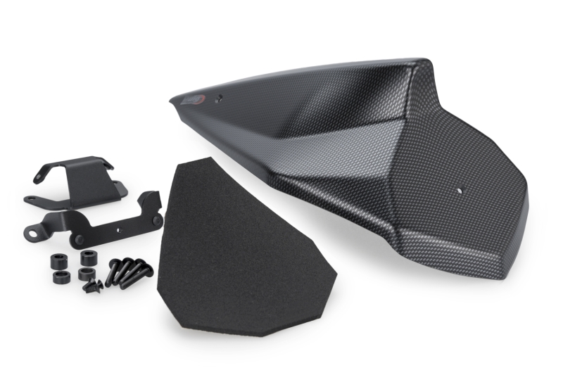 Das Rücksitzverkleidung Set von Puig reduziert bei hohen Geschwindigkeiten von der Luft erzeugten Turbulenzen und stabilisiert das Motorrad zugleich. Ein Schaumstoff sorgt für eine besseren Komfort während der Fahrt. Somit wird das Motorrad in einen Einsitzer umgewandelt.