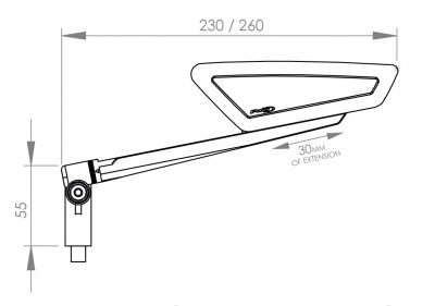 Der minimalistische Spiegel passt hervorragend in eckige Naked Bikes. Er kann in schwarz oder aluminium geliefert werden, er ist sehr gut Einstellbar selbst der Spiegel kann bis zu 30mm in der breite verstellt werden. Die Spiegel sind aufgrund der zu kleinen Spiegelfläche nicht zugelassen.