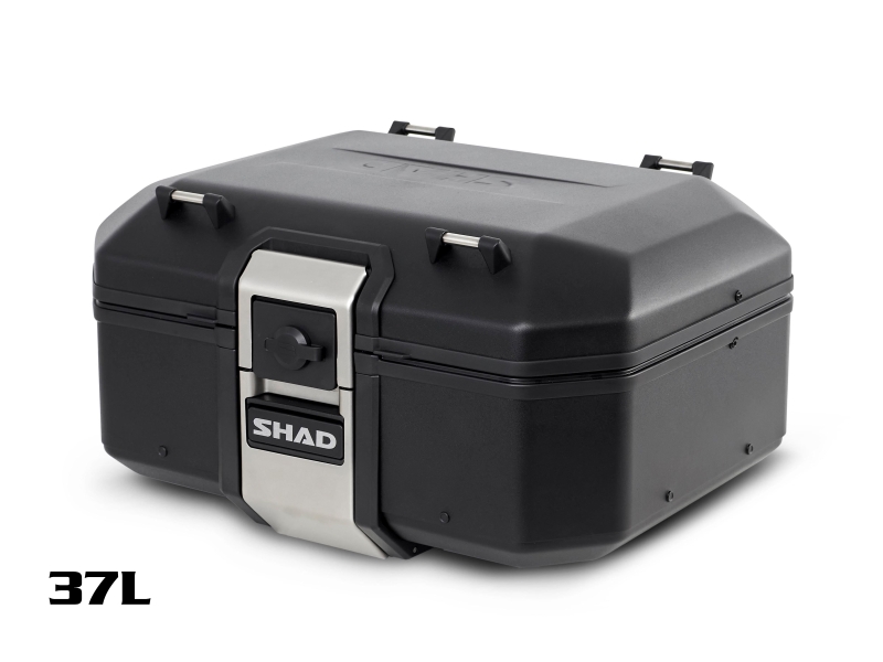 Im Lieferumfang befindet sich der Topkoffer und eine Abdeckung dafür. Die Seitentaschen sind separat erhältlich. Der Topkoffer wird montagefertig mit einem spezifischen Anbausatz geliefert. Im Lieferumfang befindet sich ebenfalls das passende Zubehör für die Montage des SHAD TR37/TR48/TR55.
