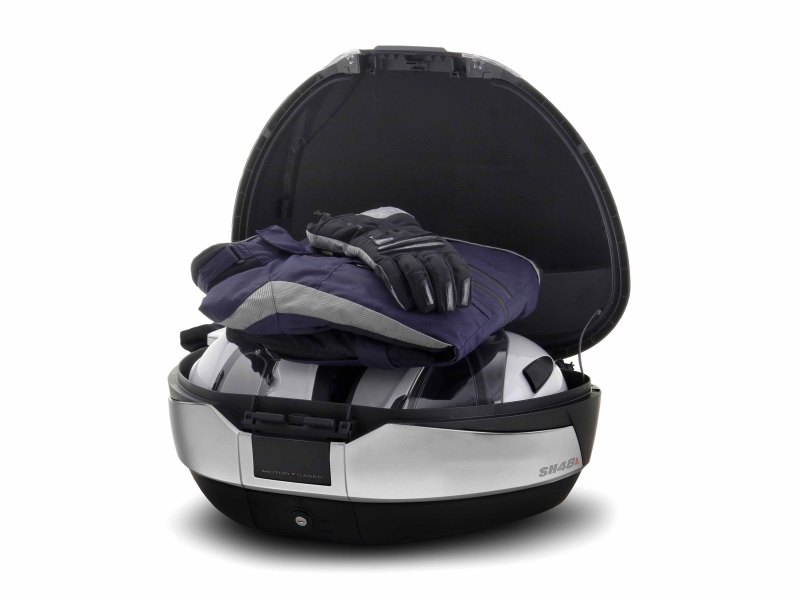 Die SH48 wird komplett montagefertig und optional mit spezifischem Aunbausatz für das Motorrad geliefert. Hergestellt wird die SH48 aus verstärktem Plastik (Polypropylen) und die obere Abdeckung besteht aus Aluminium. Im Lieferumfang befindet sich zusätzlich ein Carbonstyle Deckel und eine doppelte Rückenlehne für den Soziusfahrer, um die Fahrt noch komfortabler zu gestalten.