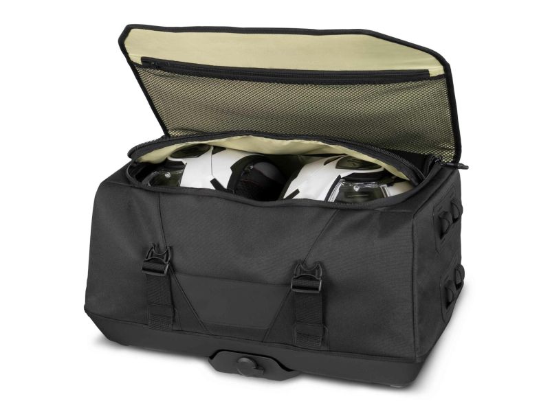 Der TR50 wird komplett montagefertig und mit spezifischem Anbausatz für das Motorrad geliefert. Der TR50 hat eine Kapazität von 40L und folgende Masse; 35x57x31,5 cm. Es passen zwei Integralhelme in die Topbox TR50. Die Innenseite des Deckels ist mit einem Netz ausgestattet.