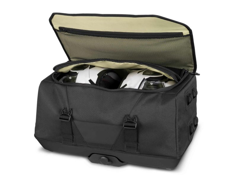 Il TR50 viene fornito completamente pronto per il montaggio e con un kit di montaggio specifico per la moto. Il TR50 ha una capacità di 40 litri e le seguenti dimensioni: 35x57x31,5 cm. Nel bauletto TR50 trovano posto due caschi integrali. L'interno del coperchio è dotato di una rete.