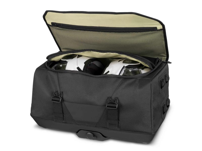 Der TR50 wird komplett montagefertig und mit spezifischem Anbausatz für das Motorrad geliefert. Der TR50 hat eine Kapazität von 40L und folgende Masse; 35x57x31,5 cm. Es passen zwei Integralhelme in die Topbox TR50. Die Innenseite des Deckels ist mit einem Netz ausgestattet.